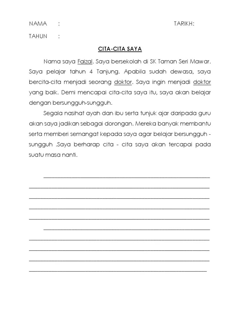 Karangan Tentang Cita-Cita Saya / Contoh Karangan Bahasa Arab Tentang Cita Cita Menjadi Dokter Ilmu Akademika. • ketua jurulatih (master trainer) majlis kecergasan kebangsaan (nfc). Kalimat berisi tentang ide dan gagasan penulis atau pembicara. 28.06.2020 · tentang saya 12 • jurulatih aerobik sukan berprestasi tinggi, iaitu gimnastik aerobik peringkat antarabangsa. • naib presiden jawatankuasa teknikal untuk "aerobik gimnastik", …